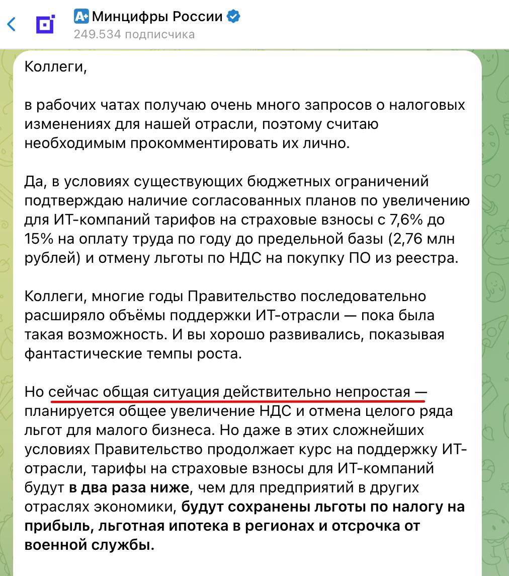 - Планы на будущее: развитие льготной политики в IT-секторе